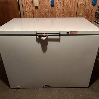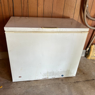 Whirlpool fridge with drawer freezer, white; Whirlpool glass top range, white; Whirlpool washing machine, white; GE dryer, white; apartment chest freezer, white; Reveo chest freezer; GE refrigerator/freezer, almond; wood dinette with 5 chairs; round top wood dinette with 4 chairs; 3 piece queen bedroom suite, with lift bed; bar stools; curio cabinet; table, floor, and oil lamps; Sony 28” flatscreen TV; kitchenwares; canning jars; Bennet upright piano; rods & reels; tackle boxes; fishing equipment; meat grinders; car stands; yard cart; aluminum step and extension ladders; and much more!