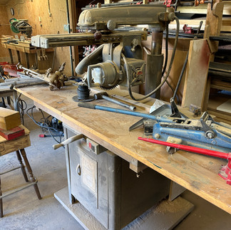1966 Ford Mustang convertible, 289 V-8, red with white top with boot and plastic rear window, white vinyl interior, power steering, 102,141 miles; Simplicity Regent 20hp., 44” cutting deck, hydrostat; Hitachi laser guide compound sliding miter saw; Delta drill press; Rockwell Model 10 Contractor table saw; Delta 6” jointer planer; Red Star radial arm saw; Grizzly belt and disc sander; Grizzly 12” planer; Craftsman band saw; router table with router; Black and Decker band saw; Craftsman band saw; Snapper 3,500 watt generator; Campbell Hausfeld air compressor, 60 gal., 1hp., single phase; Craftsman air compressor, 20 gal., 2hp.; 2 gal. air compressor; Performax oscilating spindle sander; Dewalt hammer drill; cordless drills; circular saws; hand sanders; Skil Sawzall; electric drills; C-clamps; bar clamps; wood clamps; grinders; board roller stands; Yard Machines 3.5hp edger; Campbell Hausfeld small sand blaster; Husky 1,800 psi electric power washer; hydraulic floor and bottle jacks; Craftsman 16 gal. Shop Vac; two wheel trailer; yard roller; gas cans; hand tools; primitive tools; and more!
